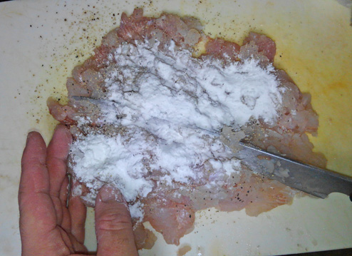 そこに塩コショウをやや多めに、さらにつなぎとなる片栗粉を入れてよく混ぜます。