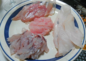 さて、せっかくの新鮮な魚、まずは刺身を楽しまなくてはということで、マナガツオ、セトダイ、ヒラをさくっとお刺身に。