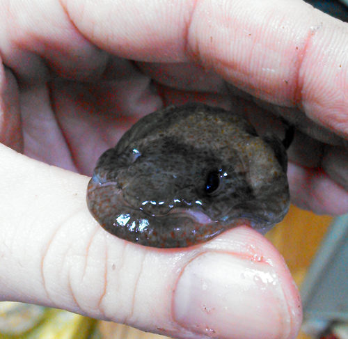 大きさは15cmほど、カラーリングや胴体の見た目はヌマチチブなどのいわゆる「ドンコ」なのだが、大きく違うのはその顔。
