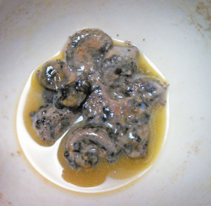 ものすごく生臭いので、塩を大量に振り掛けてよく揉み、ヌメリと臭みを落とす。