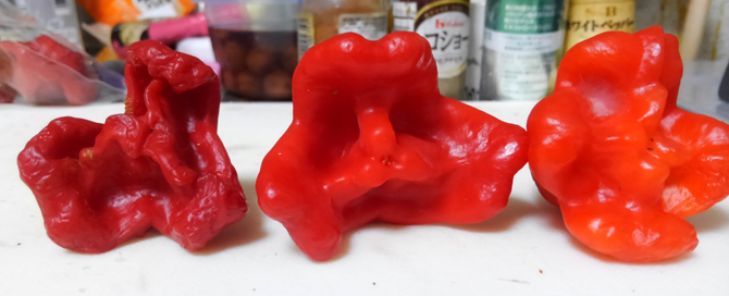 なるほど、大元から2つに分けられるんですか……見た目の鮮やかさや果皮の凸凹感が何となくハバネロっぽいなとは思ったのですが、原種が同一だとすれば……この辛さも、さもありなんですね。