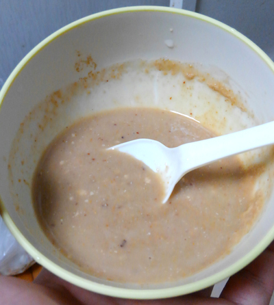 保存しておいたマテバシイ餅(むしろポレンタかな)を