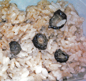 炊き込みご飯の作り方は非常にシンプルで、小口切りにしたナマコと米、酒、醤油、山椒の実を少量をあわせて炊き込むだけである。